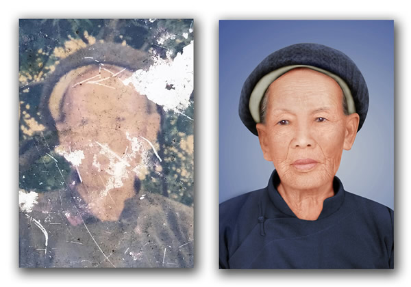 老照翻新即老照片翻新就是利用传统的美术制作以及摄影技术或者是运用计算机图形图像技术将老化、变质的相片在尽量保持原有格调的基础上翻新放大。修复图片展示